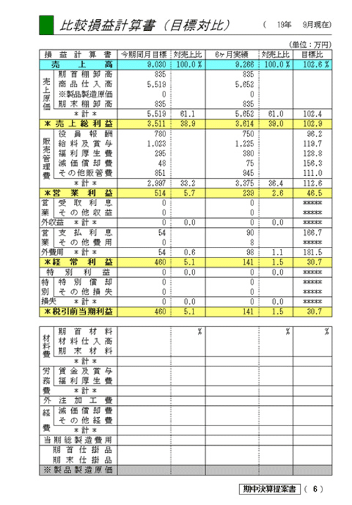 年度の始めに立てた経営計画も、達成できているかどうかを定期的に確認しなければ意味がありません。半年に一度または四半期ごとに目標と実績をチェックし、残期間に向けた改善を行なうために期中決算提案をいたします。