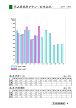 視覚的に売上高の推移を示したものです。前年対比だけでなく目標対比で推移を確認していただくこともできます。 また、付加価値や経常利益の推移もグラフ化して分かりやすくしております。 |