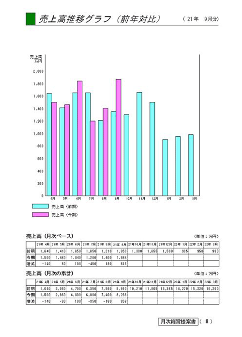 また、イレギュラーな事態が発生しても早急に有効な手が打てるよう、月次経営提案としてアドバイスも行なっております。